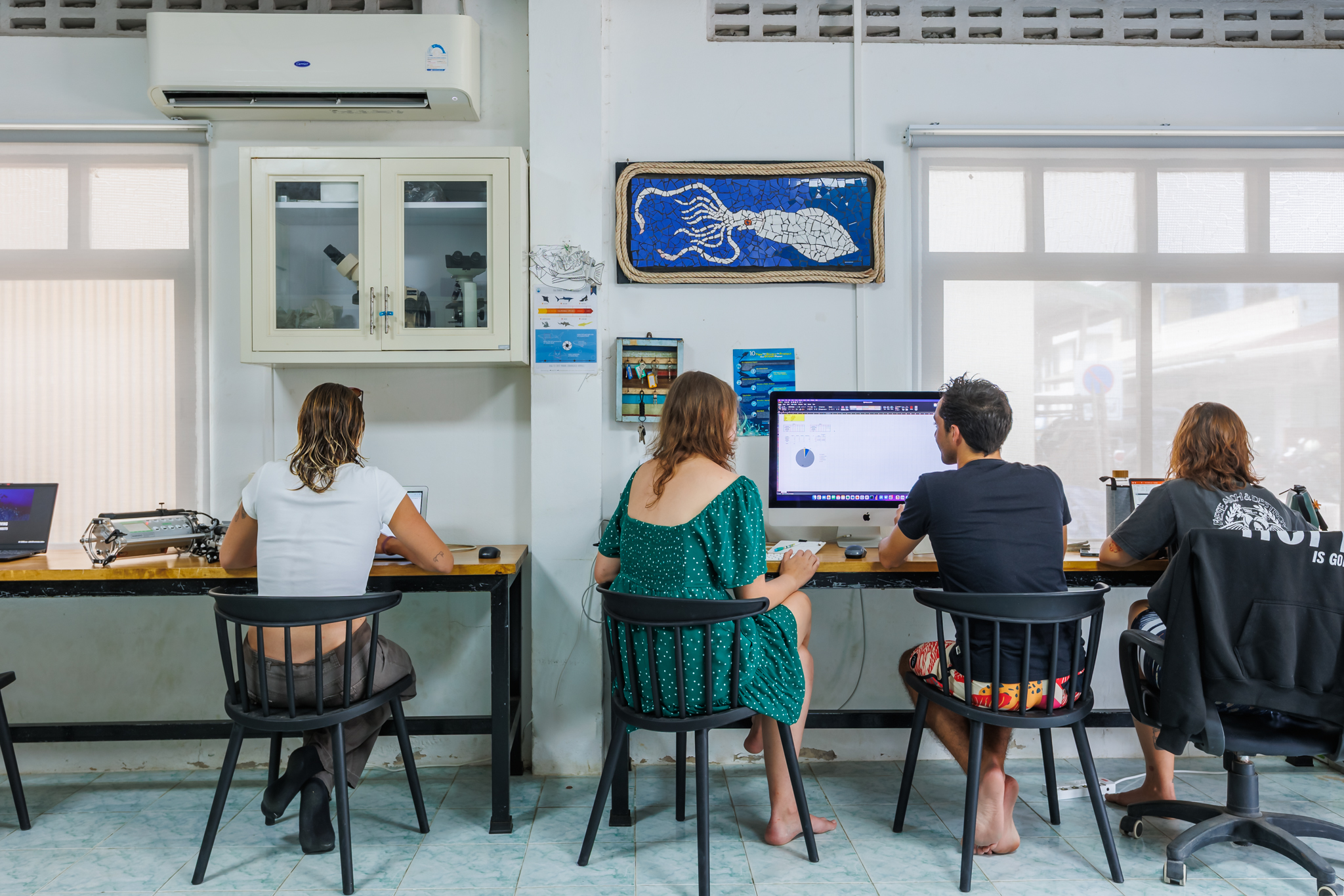 Our field research station in Thailand is located in the lower Gulf of Thailand, on Koh Phangan. Since we’re in the middle of the Samui Archipelago, we have easy access to Koh Samui, Koh Tao, and to the Ang Thong and Chumphon National Marine Parks. Koh Phangan is a stunning tropical island, fringed by coral reefs and juvenile mangroves. We even find traces of sea grass beds here (but the last Dugong was spotted 15 years ago). Koh Phangans surface is covered by tropical forest, which grows in the mountainous inland.